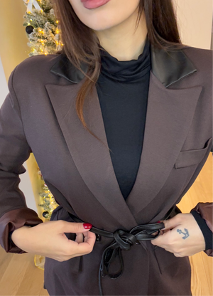 Giacca con dettagli in ecopelle e cinta in ecopelle