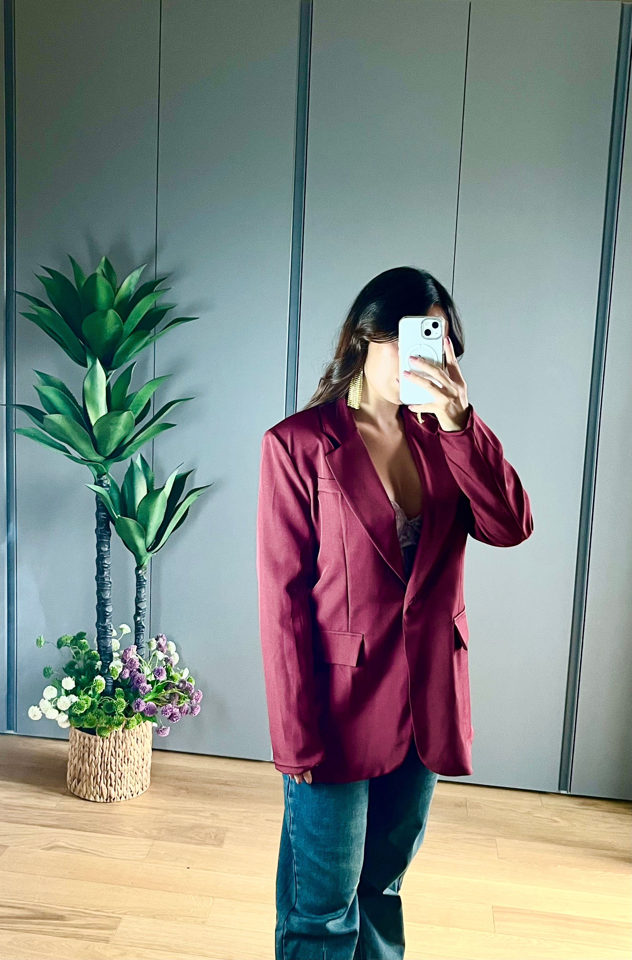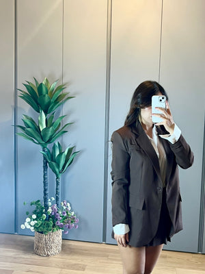 Blazer vestibilità over, foderato all’Interno e spalline rinforzate, taglia unica veste da una XS ad una XL, due varianti di colore disponibile