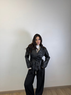 BLAZER IN ECOPELLE RUVIDA CON CINTA TAGLIA UNICA VESTE DA XS A L
