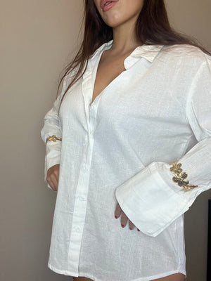 Questa camicia in misto lino è taglia unica e adatta fino ad una XL. Realizzata con una combinazione di tessuti di alta qualità, garantisce un'ottima vestibilità e un look elegante. Perfetta per ogni occasione, regalerà comfort e stile a chi la indossa.