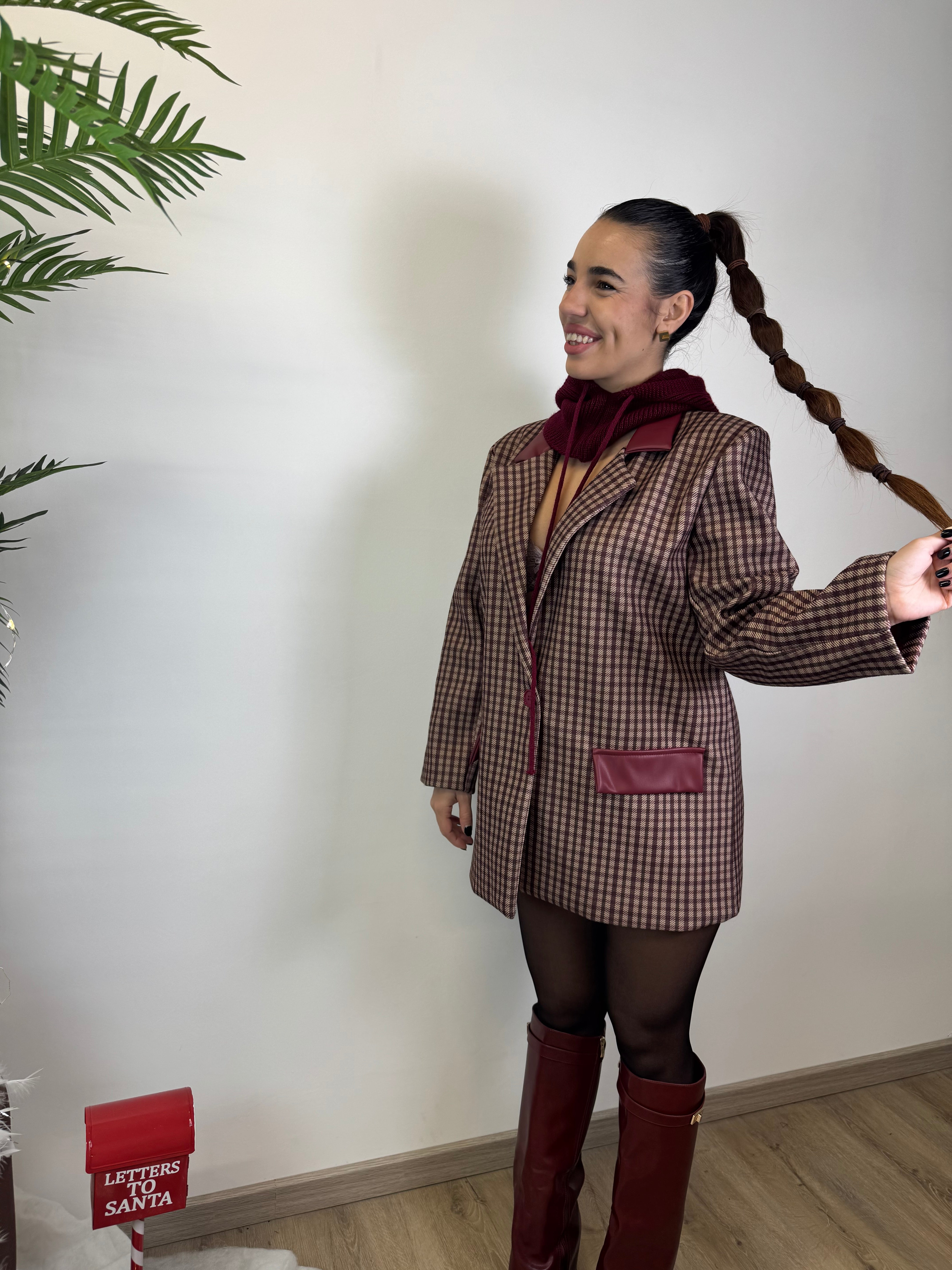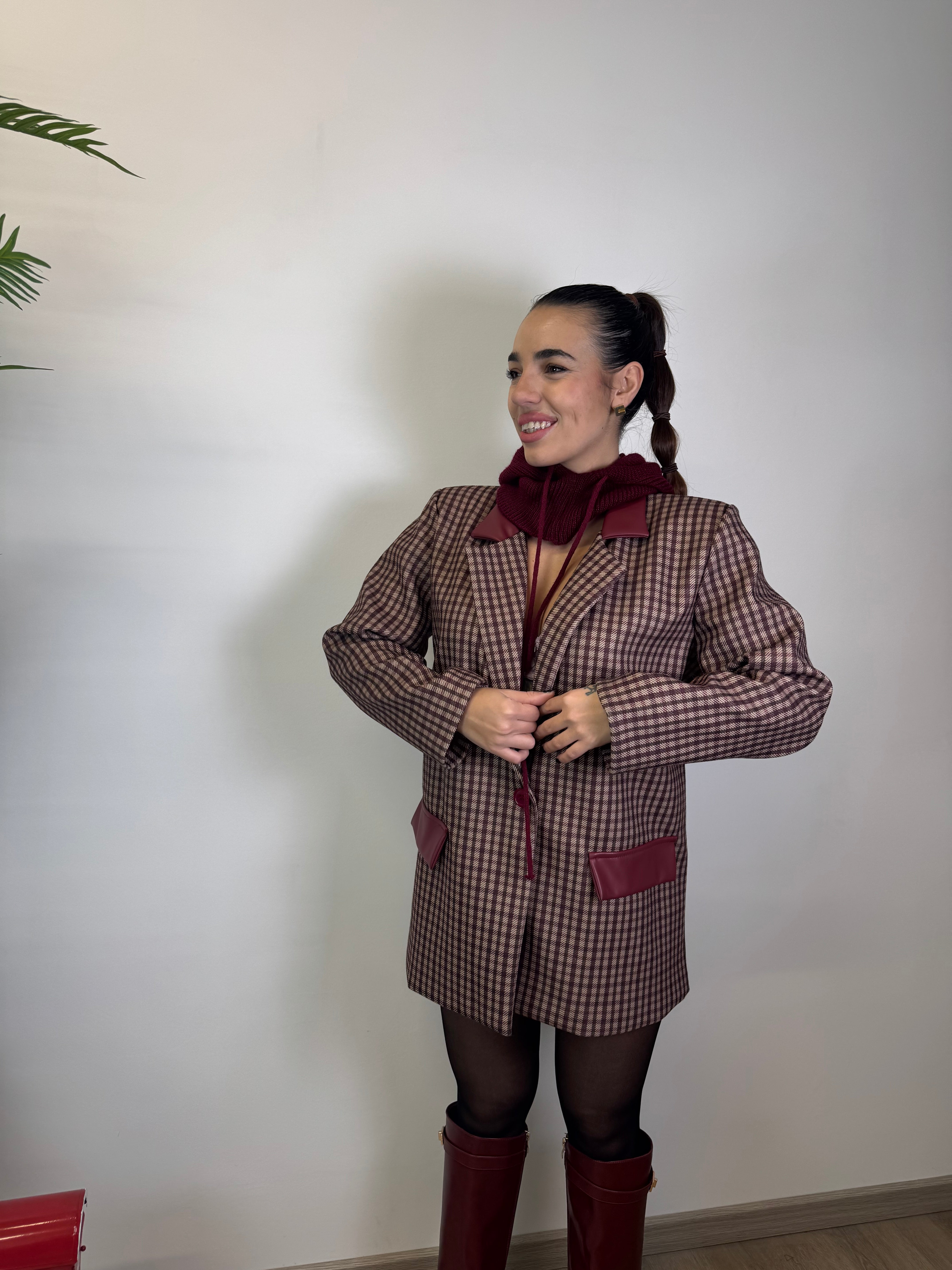 BLAZER OVER CON INSERTI IN ECOPELLE TAGLIA UNICA VESTE DA XS A L