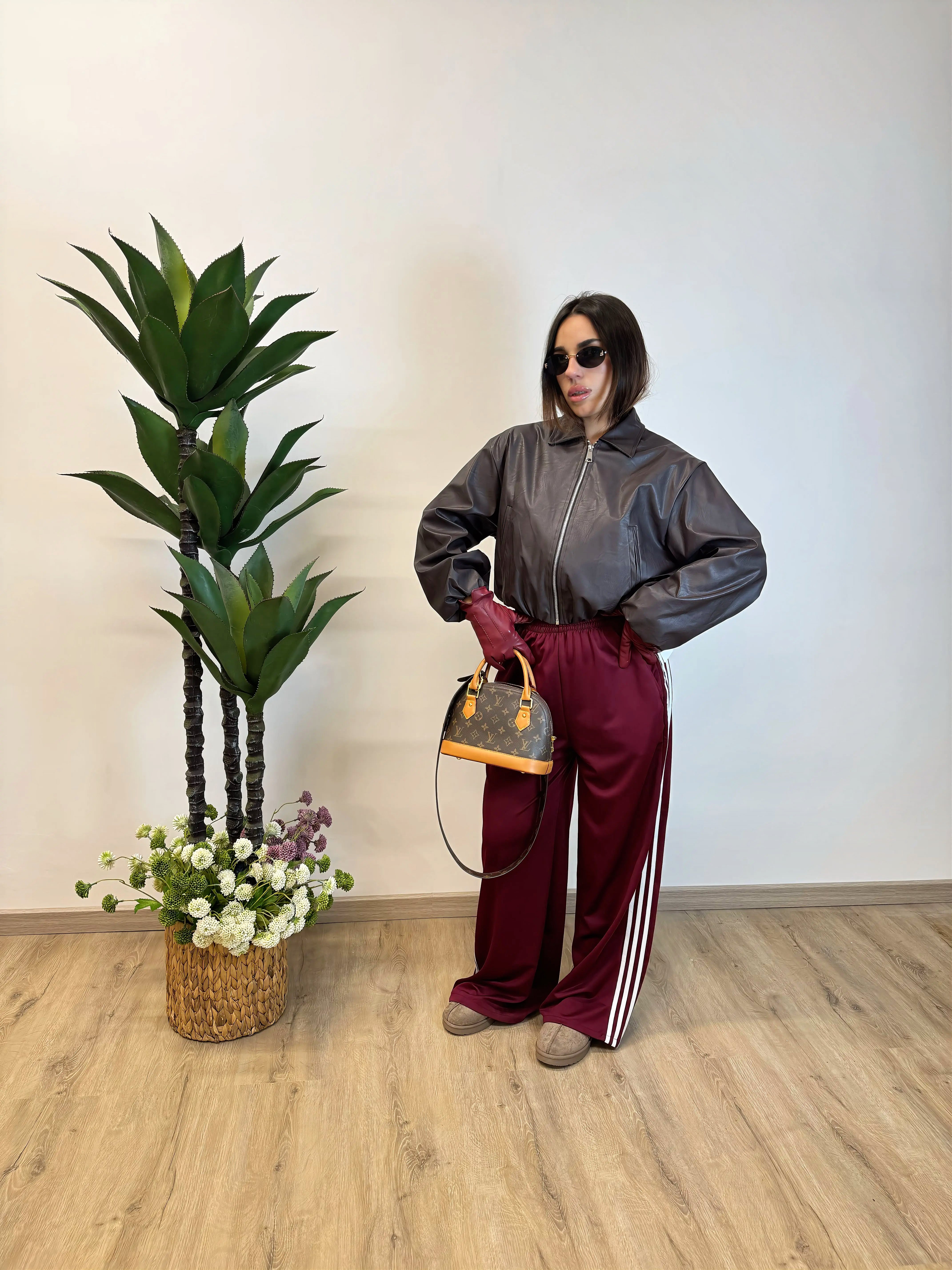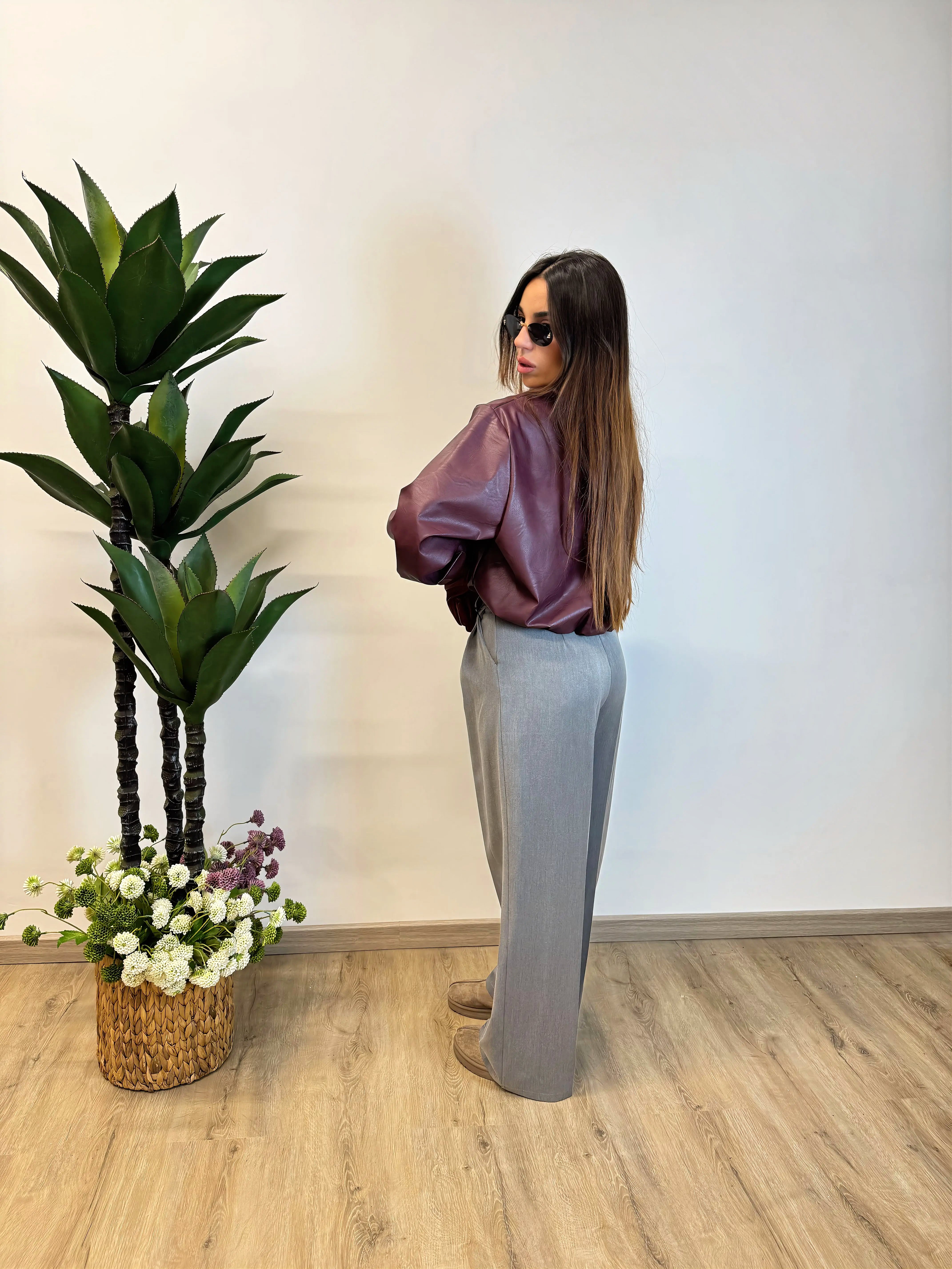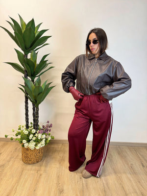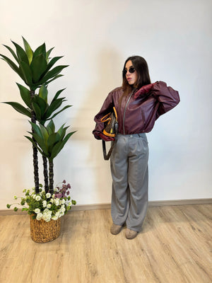 BOMBER EFFETTO PELLE, FODERATO ALL'INTERNO CON ZIP E TASCHE. TGLIA UNICA VESTIBILITA OVER, LUNGHEZZA SOPRA AL BACINO.