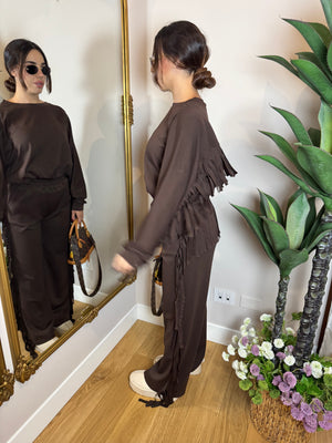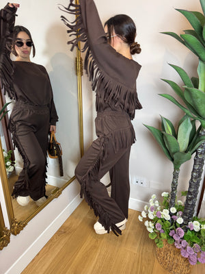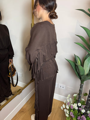 Coordinato felpa e pantalone con frangie, taglia unica veste da una XS a una XL
