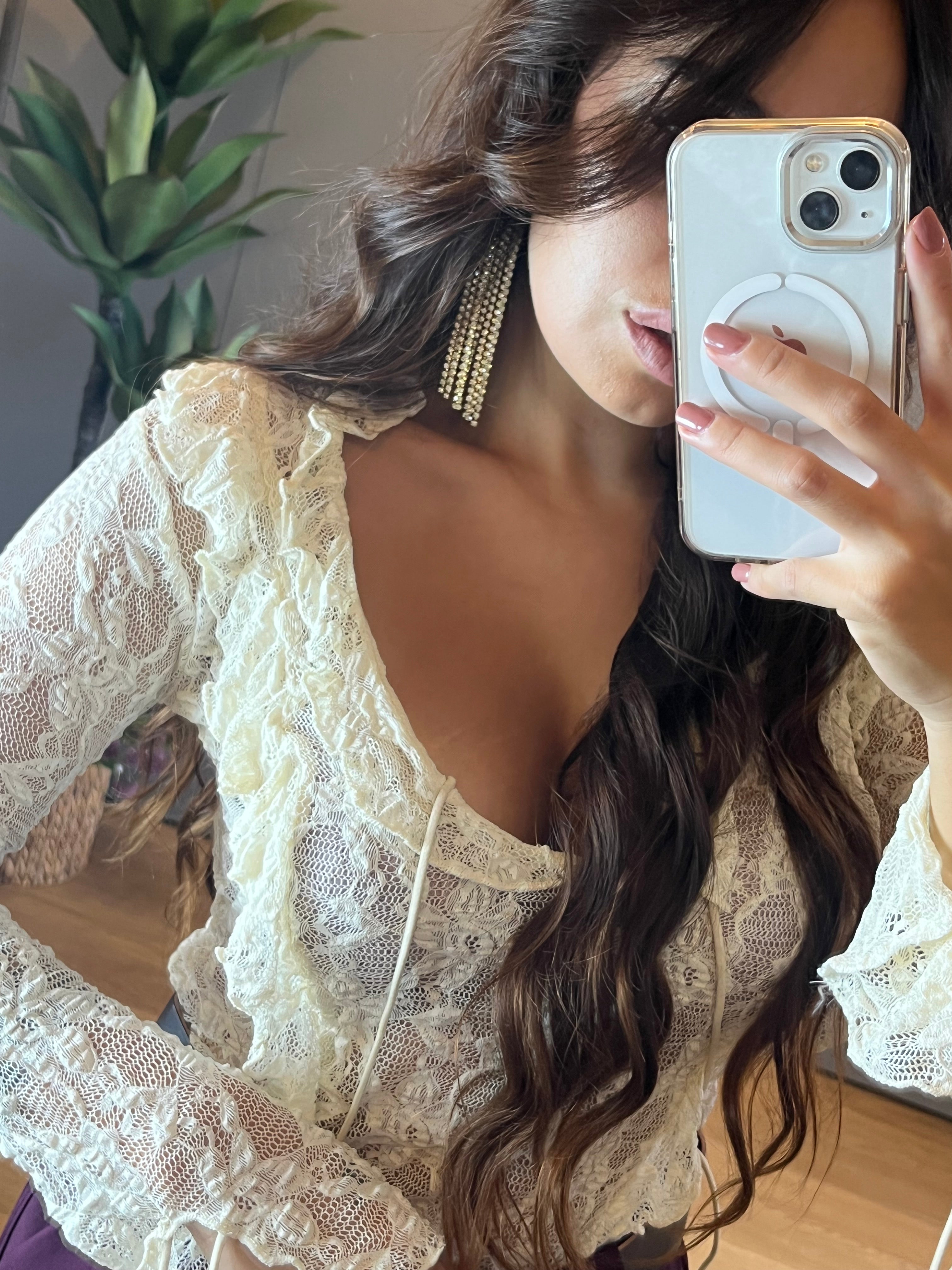 Maglia in pizzo elasticizzato, con laccetti su polsi e décolleté, taglia unica con vestibilità da XS a L tre varianti di colore disponibile