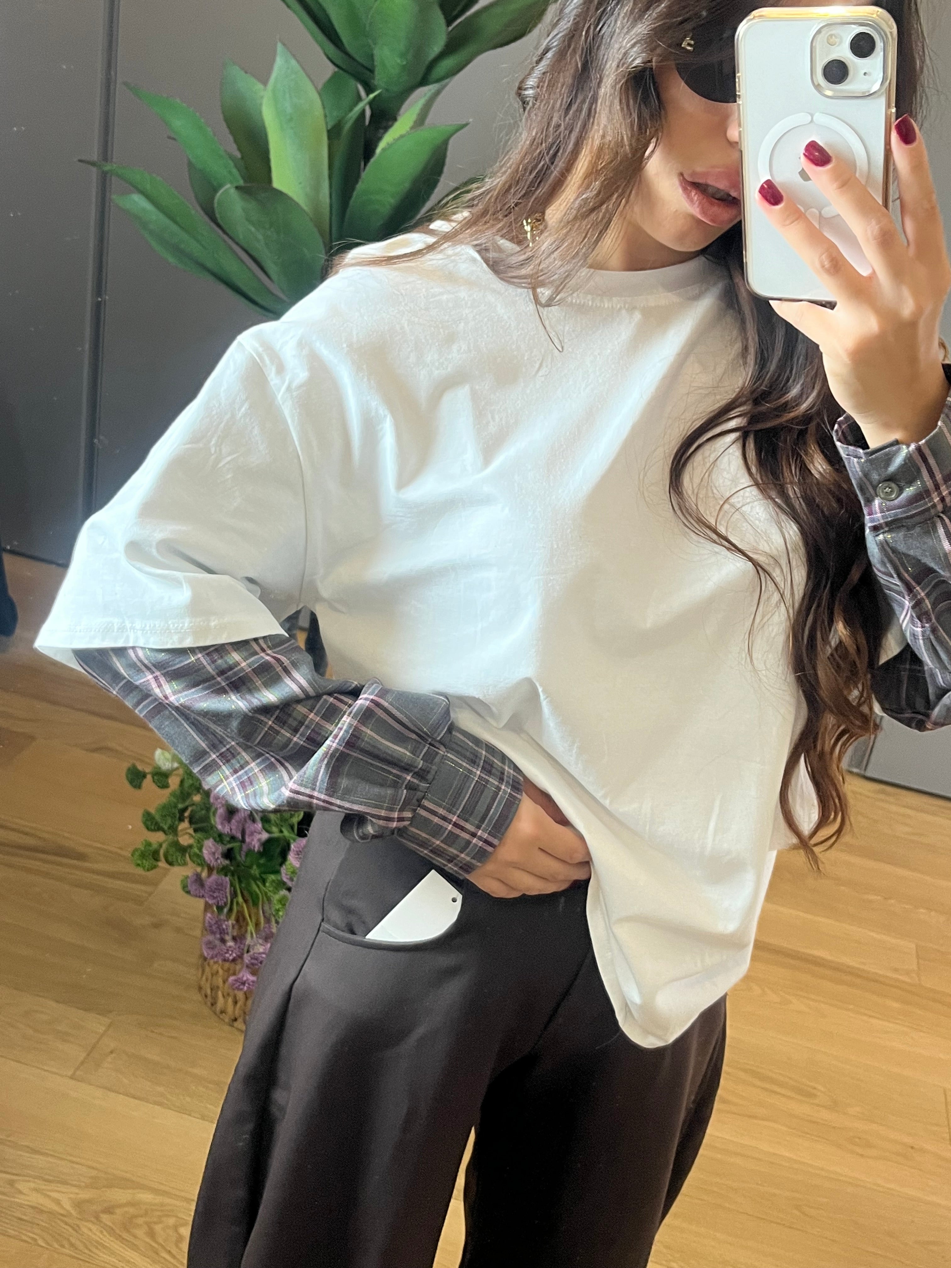 T-shirt taglio over con manica camicia attaccata, taglia unica vestibilità over, due varianti di colore disponibile