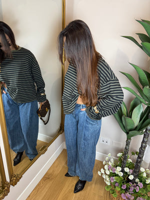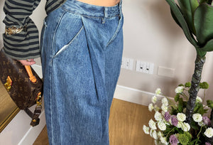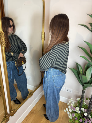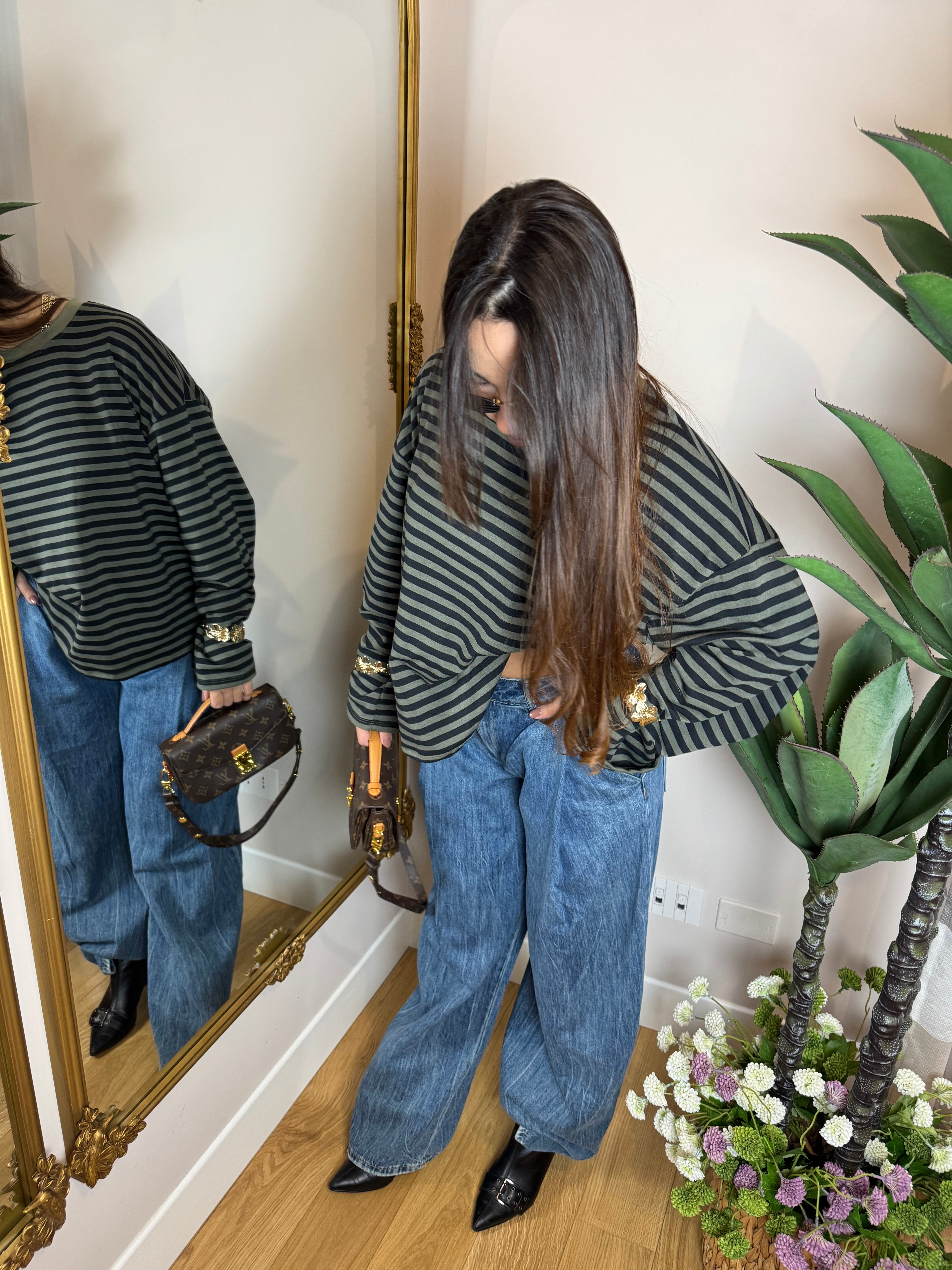 JEANS BALLON MEGA OVER LAVAGGIO MEDIO-CHIARO , LA MODELLA INDOSSA TAGLIA S