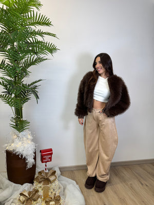 Pantalone in simil camoscio, modello ballon over. Taglia unica veste da XS a L. Porta elastico sul retro, molto elasticizzato.