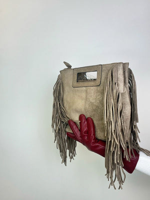 BORSA SUPER VIRALE, EFFETTO CAMOSCIO CON FRANGE LATARELA, MISURA PICCOLA/MEDIA.