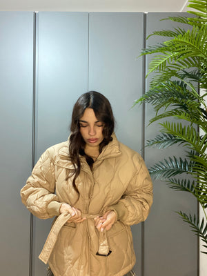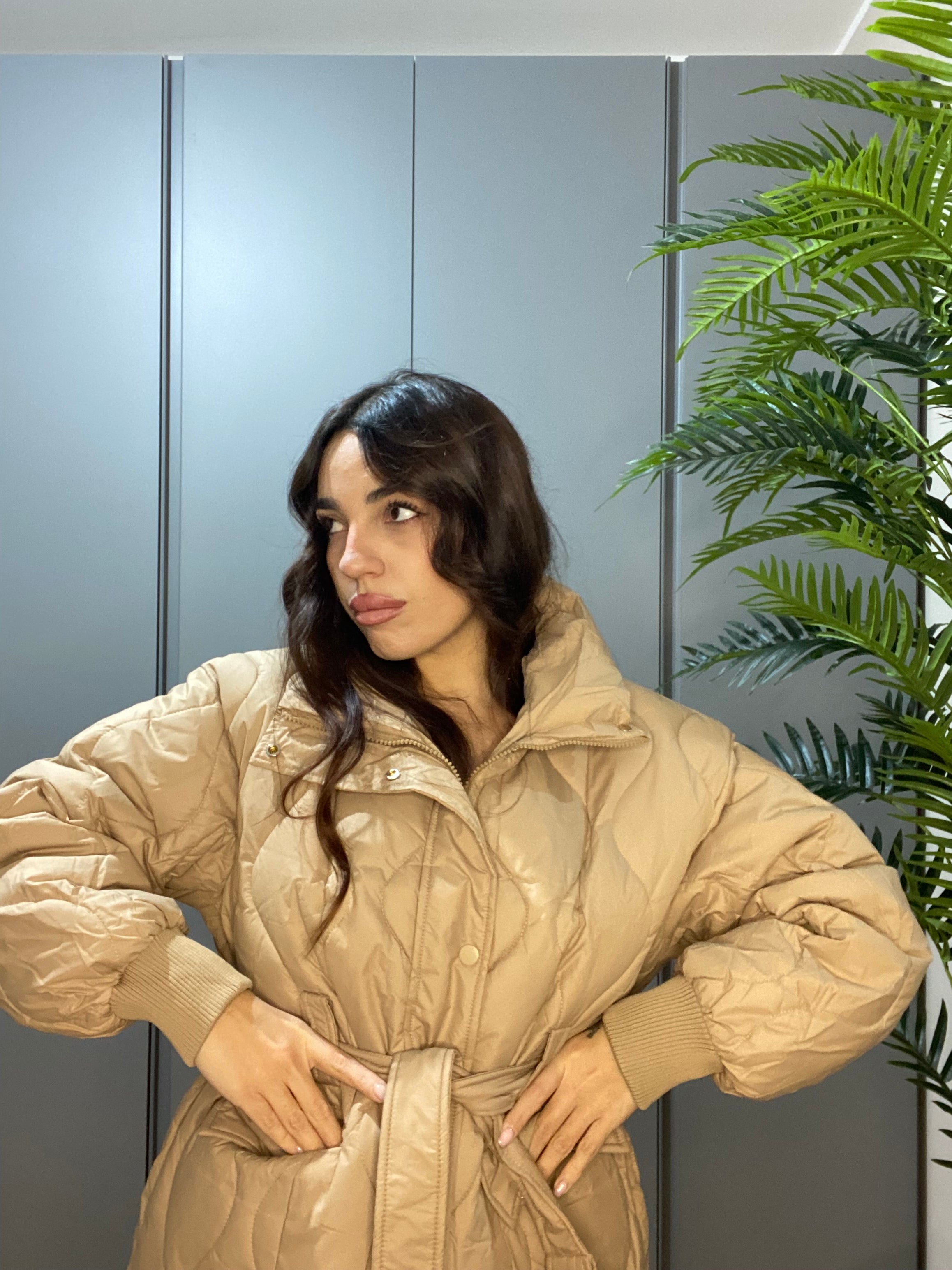 "Risplendi con il nostro Piumino haley! Con cinta in vita per una silhouette elegante e femminile. Entra nell'inverno con stile e comfort grazie al suo tessuto resistente e alla sua imbottitura soffice. Aggiungi un tocco di glamour ai tuoi outfit invernali."