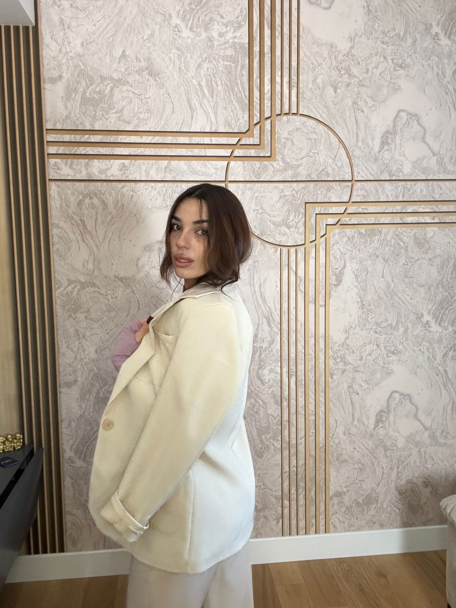 Completo color burro con giacca in taglia unica e pantalone taglie dalla S alla L vestibilità ottima